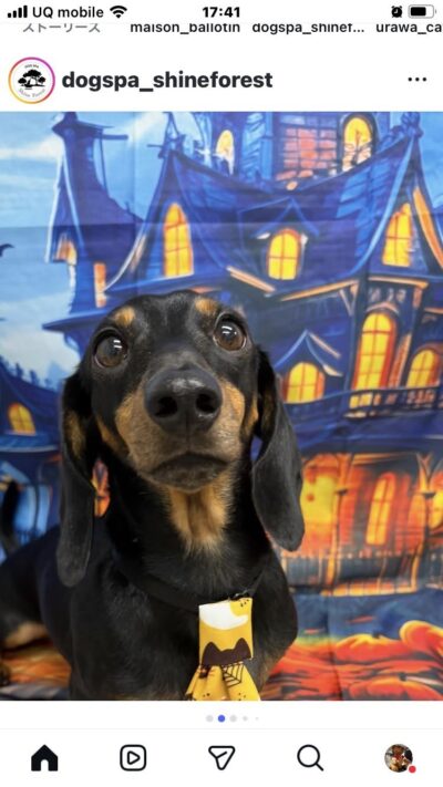 シャンプーの後ハロウィーン🎃に合わせたアクセサリーを付けて貰ったそうです👻👻